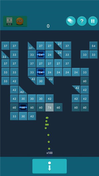 2、通过左右移动,选择切合角度来打砖块。