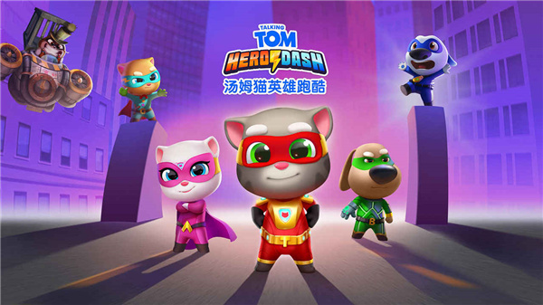 汤姆猫英雄跑酷官方正版是一款十分休闲的跑酷类游戏,在游戏中玩家们将化身为身穿超级英雄服装的汤姆猫、安吉拉、狗狗本、金杰猫等角色在无尽的赛道中进行跑酷,而在跑酷的过程中你会遇到企图破坏城市的浣熊群落,它们有的拿着弓箭、有的拿着刷子、有的拿着宝箱......所以身为保护城市的超级英雄,你需要在躲避前方障碍物的同时还要尽可能的击败这些浣熊,因为击败它们不仅有助于你修复城市,还能让你获取高分。