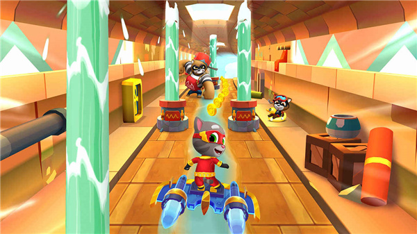 同时,除却基本的跑酷玩法以外,汤姆猫英雄跑酷正版游戏还内置了修复城市、挑战关卡、拯救行动、解锁皮肤等玩法,其中拯救玩法最受欢迎,因为你拯救的是安吉拉、狗狗本、金杰猫和汉克狗,只要你顺利的营救它们,那么你就可以获得该角色,其玩法是不是与大家所接触的跑酷游戏有所不同呢?不仅如此,汤姆猫英雄跑酷最值得一提的还是丰富的跑酷场景,诸如热带海滩、中国长城、埃及金字塔等等,不同的场景可带你感受全新的欢乐!欢迎感兴趣的玩家前来下载畅玩。