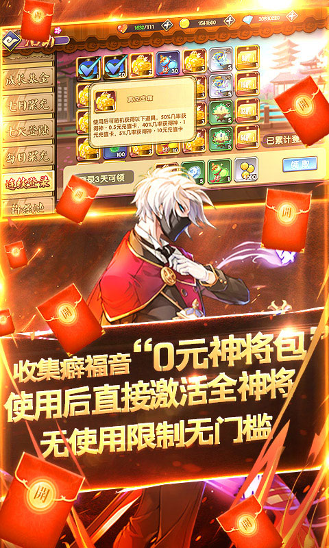 2. 收集癖福音“0元神将包”,使用后直接激活全神将,无使用限制无门槛,不花一分钱;