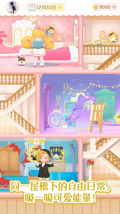 2、可爱度过温馨治愈的休闲时光:角色设计可爱可人,场景温馨治愈,度过轻松愉快的休闲时光。