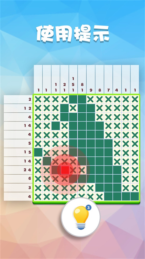 2、数字就是你的线索,它表示需要填充多少个连续的格子。