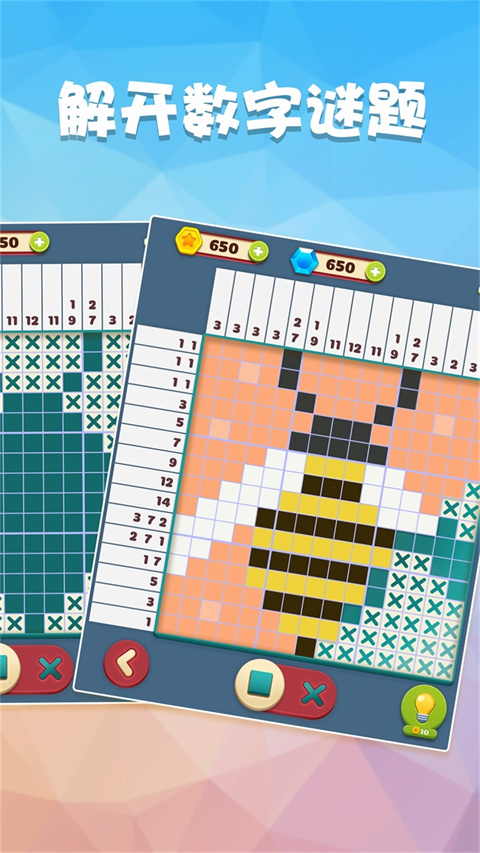 数独趣味闯关游戏是一款好玩的休闲益智手游,游戏玩法以数独为基础,玩家需要填入方块,或是叉号,一步步的将整个棋盘数字对应好。有趣的是,当棋盘完成之后会变成一个像素图画,增加了游戏的可玩性和观赏性。
