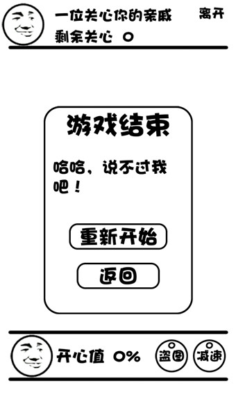 斗图大战之亲戚拜年完整版是一款恶搞型的休闲娱乐游戏。春节快到了,众多亲朋好友聚到一起,小伙伴们做好迎接热心亲戚的问候准备了吗?相信每年都会有很多棘手的问题:催婚、催孩子、问成绩...有些问题实在猝不及防、很难回答。so小编为大家带来这款斗图大战之亲戚拜年完整版游戏,游戏非常考验反应和手速,俗话说“天下武功,唯快不破”,平时有什么不好说的,来这里用表情包怼回去。当然这只是虚拟游戏,我们还是要做个礼貌的好孩子,感兴趣的朋友可以来下载一下~