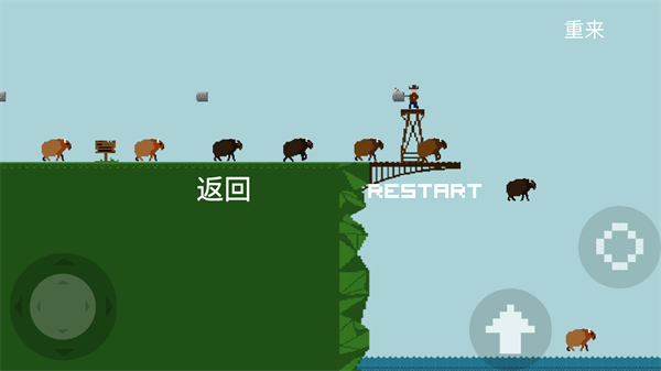 1、玩家需要操控角色进行入河闯关,只有进入河里,游戏才算过关,在入河的途中你操纵的角色会遭遇各种阻挠