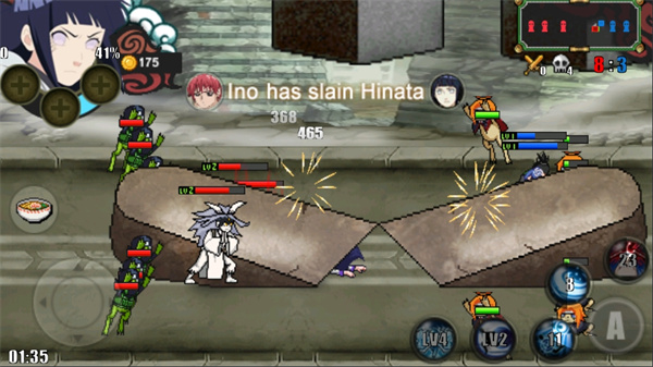 火影战记是一款以火影为题材的横版动作格斗游戏。火影战记游戏中可以使用的人物有U、佩恩、小南、鸣人、小樱等人气角色,忠实还原了每个人物的特色,每个角色都拥有各自的技能。当然,游戏玩法也简单,就是击败敌人,拆掉敌方的3座建筑即可获得胜利,火影迷们不妨来试试看哦火影战记游戏100%正统还原原著剧情,疾风传篇章登场,十年百忍强力降临,玩家可以任意扮演鸣人、佐助、宇智波鼬等忍者,体验酣畅淋漓的忍术格斗连打和全屏奥义大招。不仅如此,火影战记游戏界面设计逼真炫酷,丰富的装备系统为玩家带来无尽的游戏体验感,流畅的画面操作感带给你最真实的游戏体验,玩家在游戏中可以花费金币来解锁技能,多角度展开对战哦。