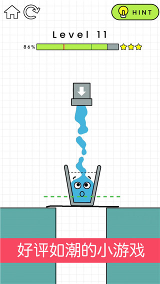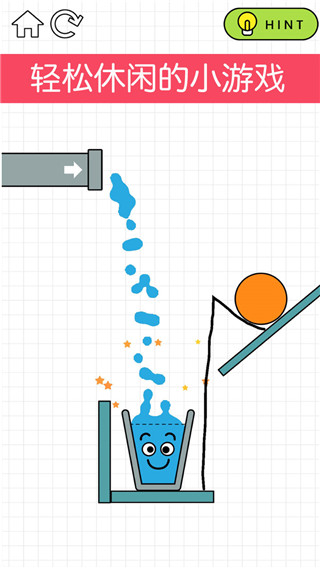 1、游戏玩起来还是比较轻松简单的,玩家只需要控制好画笔进行绘画,并且让液体能够顺利的流进水杯中,从而让里面的形象微笑,即闯关完成。