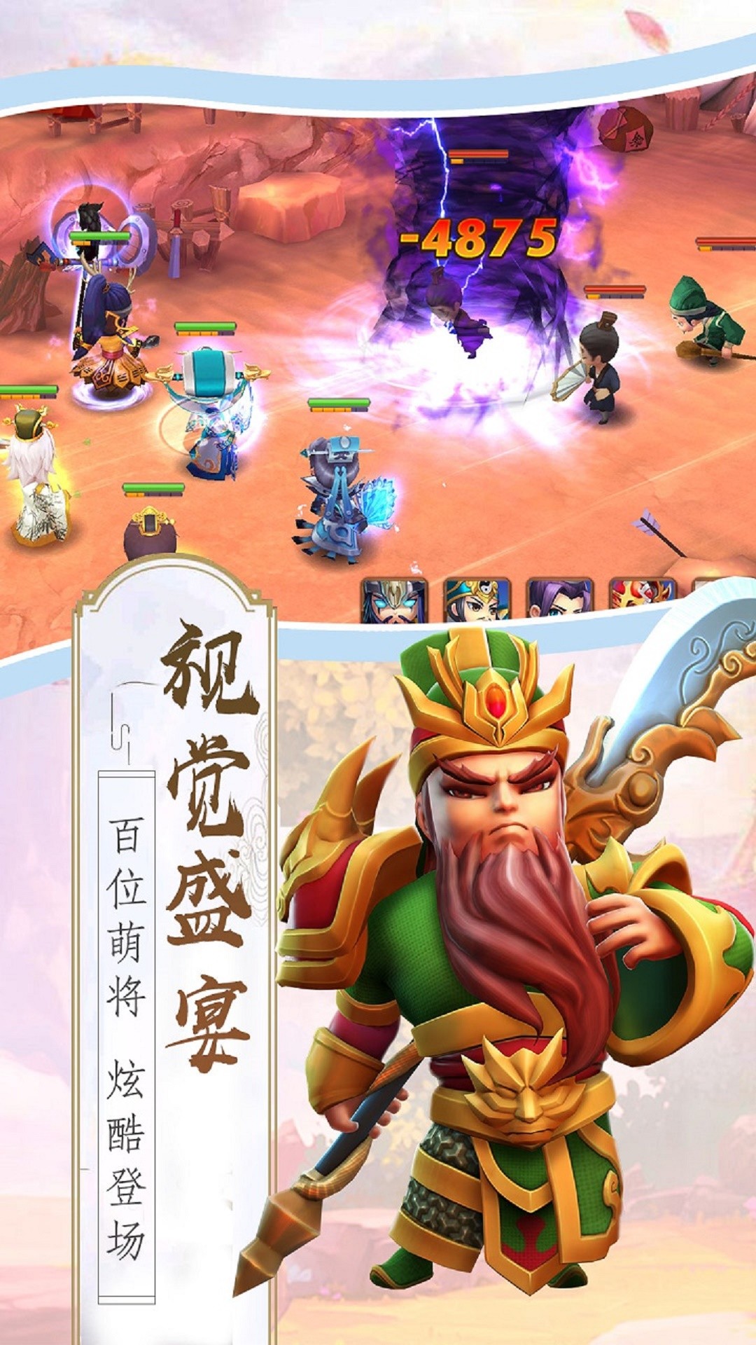 2、超多三国英雄任你搭配,大型三国千人斩。多套炫酷造型,全面培养,限定时装尽收囊中