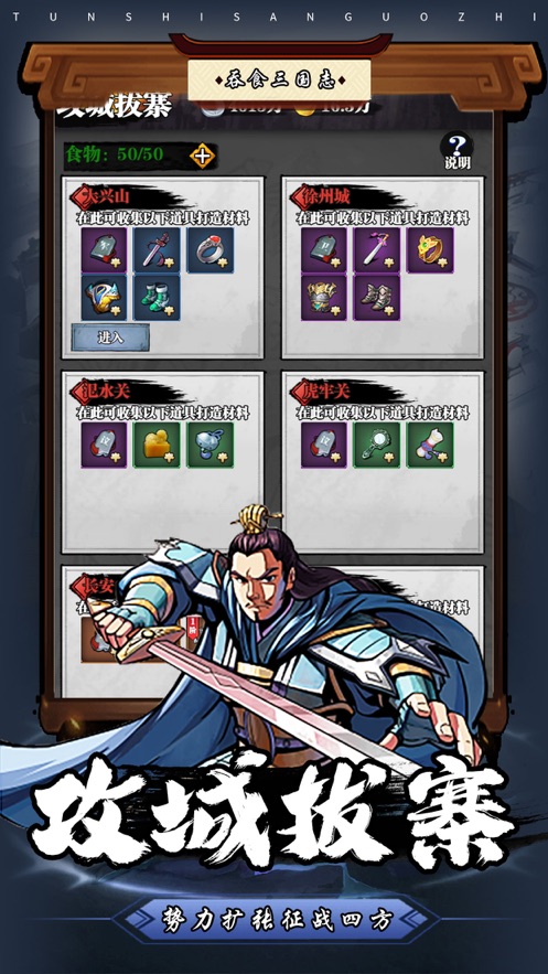 招募三国名将齐聚一堂,兵种配置演练养成,积攒物资蓄势待发