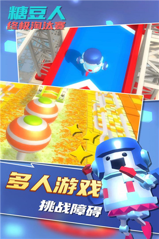 1、【闹哄哄的多人闯关综艺】 游戏中,你将在扮演一个萌贱的糖豆人,在线体验参与闯关综艺的刺激!在这里迎面扑来的是一组组异想天开的挑战和妙趣横生的障碍赛,同台竞技的则是一批又一批来自五湖四海的线上玩家。大家的共同目标都是淘汰对手,晋级下一轮,迎接新的混乱之战。2、【乱斗只为争夺唯一的皇冠】 所谓“剩”者为王,只要留到最后,全场唯一的胜利皇冠就是你的!欲戴皇冠,不趁乱搞事怎么能行?看着你身旁的对手们被推搡地弹来飞去摔出场外,还有什么比这更能令人身心愉悦!请尽情享受与对手的相爱相杀、碰撞乱斗吧!