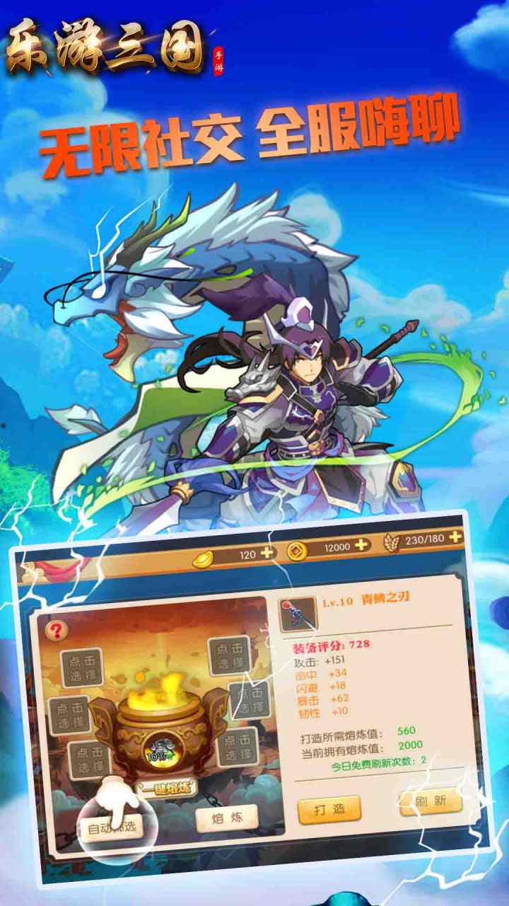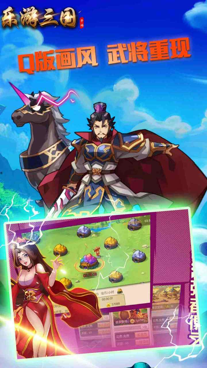 《乐游三国》是一款卡牌收集类游戏,游戏美术风格Q萌。星际掉落10枚陨石,化作力量无穷的神兽玉玺,掉落各个州郡,谁能收集齐这10枚玉玺便能获得无上神力,主宰三国。游戏将瑞兽元素融入到三国题材中,加上颠覆性无节操剧情,给玩家带来与众不同的体验。游戏中独创骑战玩法进一步加大了战场的不确定性。众多武将一一登场,更融入大量瑞兽元素,让每个武将都能骑乘驯服的瑞兽一同作战,让玩家在瑞兽的帮助下体验微型战争的乐趣。国战,军团战,跨服个人战,你想要的PK都在里面,应有尽有,来开启属于你的王朝吧。