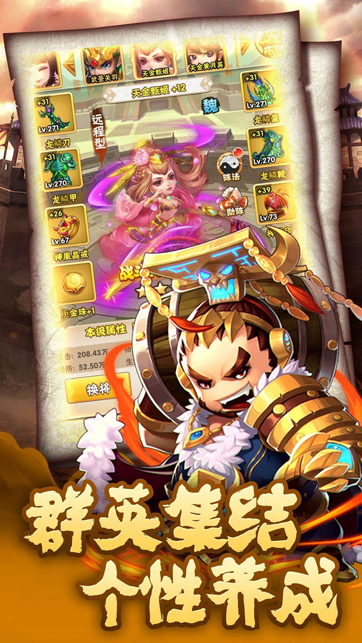 趣味三国冒险,爆笑武将养成!《小小三国志》是一款Q版三国卡牌游戏,脑洞清奇,画风呆萌,三国名将通通都到碗里来!懒人模式,轻松挂机升级打Boss,在上班的同时一统三国;精美卡通渲染,流畅骨骼动画,鲜活可爱的人物让人爱到无法自拔;多样玩法其乐无穷,给你活力四射的愉快三国体验!