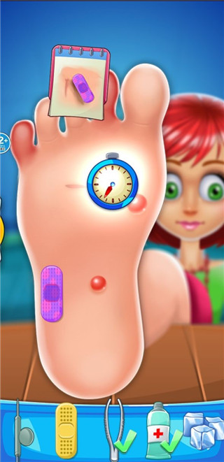 3、然后进行修脚,这里需要将道具拖拽至伤口处便可以开始治疗;