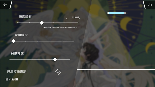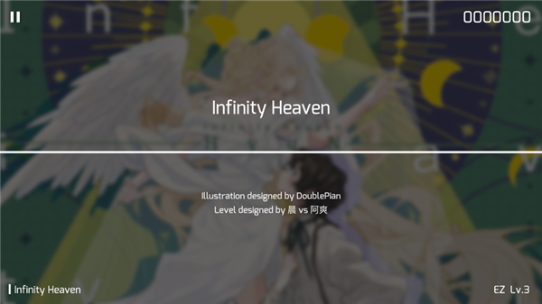 6、炫酷的谱面,优秀的音律,挑战「EZ」、「HD」、「IN」、[AT]四种不同难度的原创曲目。