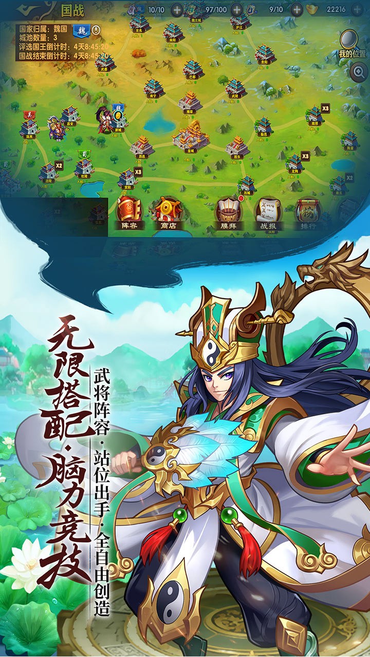 2、多样化的竞技战争玩法,让玩家领略三国争霸风采同时还能自主操作,享受指挥战争的乐趣;