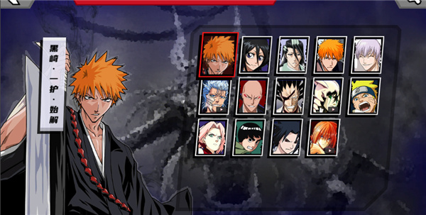 1、打开真死神VS火影绊游戏,进入游戏模式选择,可选择故事模式、闯关模式、对战模式、训练模式;