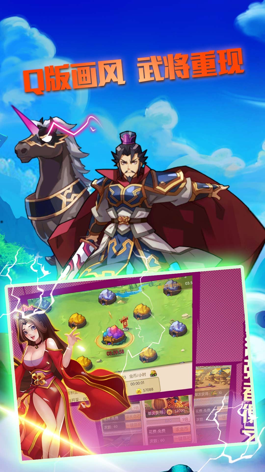 《三国霸热血枭雄》是一款卡牌收集类游戏,游戏美术风格Q萌。星际掉落10枚陨石,化作力量无穷的神兽玉玺,掉落各个州郡,谁能收集齐这10枚玉玺便能获得无上神力,主宰三国。游戏将瑞兽元素融入到三国题材中,加上颠覆性无节操剧情,给玩家带来与众不同的体验。游戏中独创骑战玩法进一步加大了战场的不确定性。众多武将一一登场,更融入大量瑞兽元素,让每个武将都能骑乘驯服的瑞兽一同作战,让玩家在瑞兽的帮助下体验微型战争的乐趣。国战,军团战,跨服个人战,你想要的PK都在里面,应有尽有,来开启属于你的王朝吧。