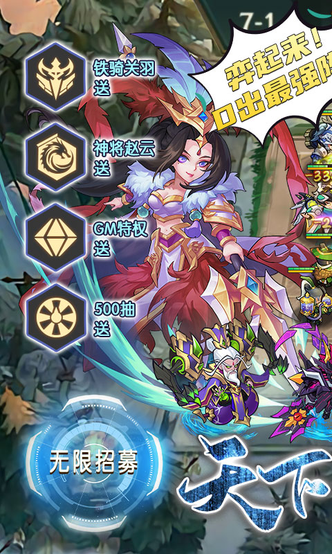 3、各种强大的三国武将,赵云、吕布、孔明等等待玩家来招募