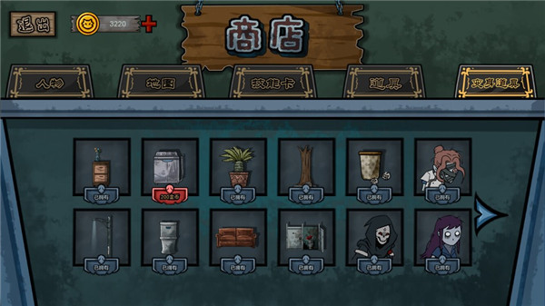 3、在规定的时间里面进行躲藏,不暴露自己身份,不要被邪恶的屠夫找到。