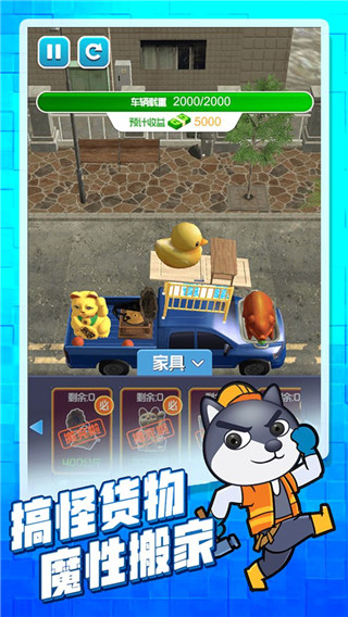 1、爆笑元素,无处不在什么?公司员工竟然是超魔性的狗头角色!什么?运的货物居然还有黄金马桶!快乐搬家,快乐游戏。