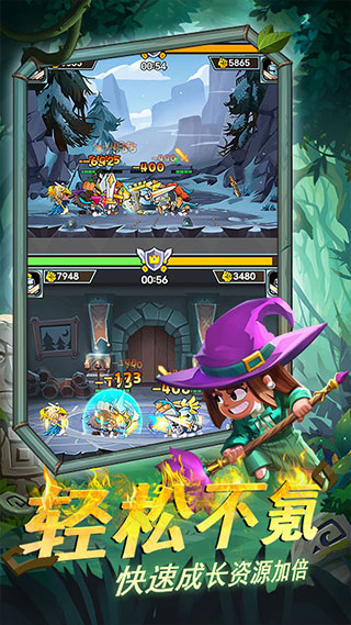 1、【超休闲的放置挂机!一起拒绝爆肝刷怪!】一起和爆肝Say NO!放置战斗、离线挂机、资源全返,应有尽有;挂机还能获得卡牌、经验、金币、钻石等超值奖励;一键升级、全员成长,轻松培养你的军团!