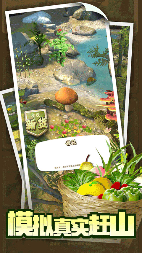 采集完食材,还需将食材装篓,拖动食材到竹篓,全部装填完成后即可下山。