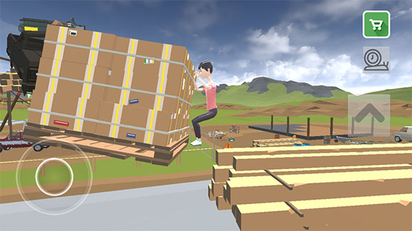 2、操作界面是左右分布的,左边是轮盘,玩家用这个来控制主角行走或奔跑的方向,右边向上的图标则是跳跃的按钮。