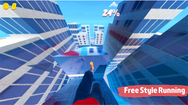 3、感受史诗般的跳跃,快速滑动和碎玻璃的刺激,从一个建筑物边缘跳到另一个建筑物边缘,并以第一人称视角选择最佳路径以到达终点。