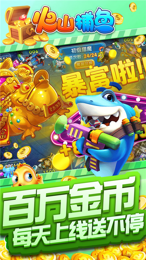 而且火山捕鱼最新版本App除了丰富多样的玩法外,还为玩家提供了多重福利。参与各种活动,赢取海量金币,享受专属好礼的每日福利,让你畅享游戏的同时,还能享受到丰厚的奖励!精彩的缤纷赛事更是让火山捕鱼脱颖而出!每周都有千万豪礼相送,参与大奖赛活动,赢取万元大奖,轻松拿取千元好礼,让你成为捕鱼界的传奇!聚宝盆玩法让你一炮千倍,直接翻身成亿万土豪!还有猎魔场暴击玩法,让你轻松上分无人能挡!喜欢的玩家赶紧来本站下载游戏,一起体验最真实的捕鱼乐趣,赢取丰厚奖励,成就你的捕鱼传奇!