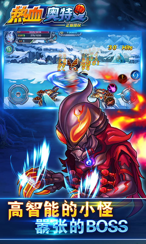 《热血奥特曼》游戏玩家拥有了一个奥特曼,通过搜集套装进阶,你就能变成8个奥特曼! 每一次换装,能力都得到进一步加强,玩家的进步,在游戏中的表现是很抢眼的。