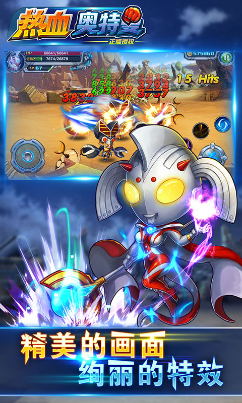 热血奥特曼官方授权,正版IP,带你回味经典奥特曼的动作游戏;最爽快最带感的的格斗游戏,用你超酷的动作华丽的招式撕碎外星怪兽,成为保卫地球的新一代勇士;游戏中您将体会到洁白如玉的冰雪世界;残桓断壁断壁的大漠;广袤无垠的草原;布满呢金色阳光的海滩以及那令人恐惧的火山。
