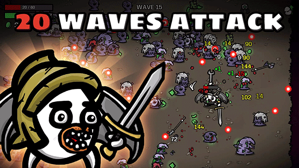 总共20波敌人,每一波时间从20秒逐渐增加到90秒,结束后会开启商店,商店可以购买道具和武器,也可以消耗材料来刷新。