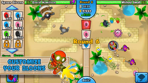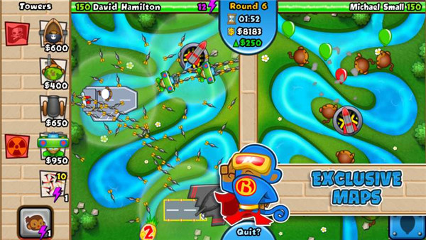 建立猴子塔尽可能打造一个强的阵容,并与其他玩家在每周争议的领土事件的成绩竞争。使用猴科学的新派玩家对玩家的bloon攻击,然后看看谁的防御是强的,并赚取额外的胜利奖励。