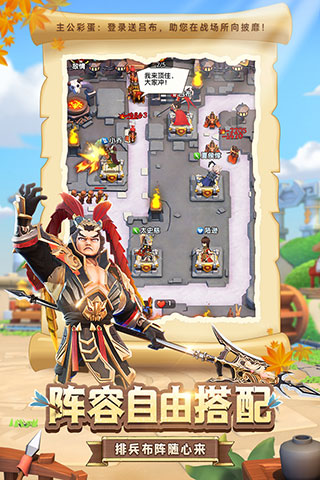 全民主公2官方版是一款以三国时代为背景,集塔防玩法、RPG策略、卡牌武将养成于一身的策略塔防手游。Q版诙谐画面,色调轻松典雅,角色萌态可掬,百名史诗武将震撼登场,让三国历史战役在你的指尖生动重现。该游戏将一种全新的形式定义塔防游戏,原来塔防还可以这么玩。每日任务领VIP经验值、全员无废将、英雄任你抽,简直不要太爽。除此之外,在全民主公2官方版中,玩家将重回三国古战场,天降神将,睡觉升级。超过100位三国名将任君差遣,为你而战。游戏采用战前布阵的即时战斗模式,5V5全AI公平战斗,阵容策略任君组合。更有融合Roguelike元素过关斩将玩法、挂机玩法等,带你体验真正的躺赢畅快感,喜欢的朋友可以下载全民主公2哦。