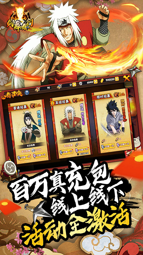 1、创角即送10W金币,500W银币。超人气SSS我爱罗、3000真充卡、百抽限时招募。