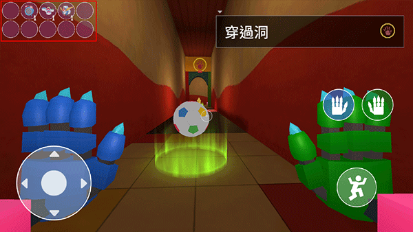 2、左下角按钮可以操纵角色自由移动,右侧代表左右手掌,便于拾取物品。