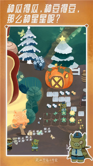 1、家园建设,制作工具、设施、建筑、环境装扮,DIY自己的晚安森林;2、森林种植,晚安森林有各种美丽的植物,种植季节不一样,成长结果不一样;
