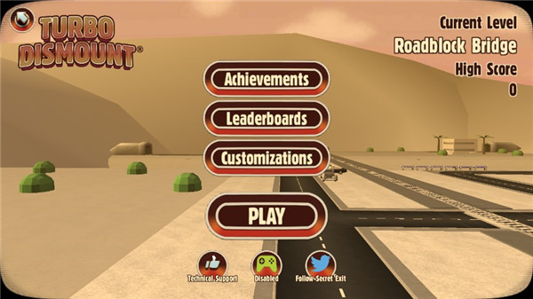 游戏为玩家们提供了三种车辆的选择,同时人物在车上的形态也可以有好几种,例如坐在车里、坐在车顶、挂在车窗、掉在车尾等等。在这里小编最想说的是游戏在整个赛道上的障碍设置非常丰富,各种障碍一应俱全,保证能满足大家对于车祸现场的奇葩想法,让玩家们可以来一次惊险刺激的道路挑战。