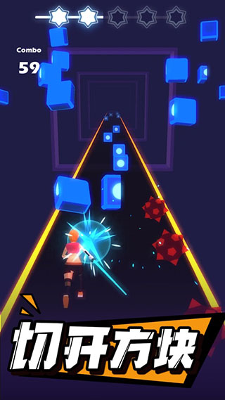 3、使用小人手中的光剑切开飞驰而来的方块!