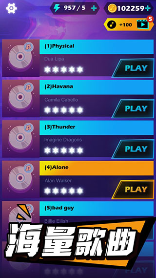 2、歌曲持续更新,如果你有自己最喜欢的歌单,可以自定义曲库挑战。