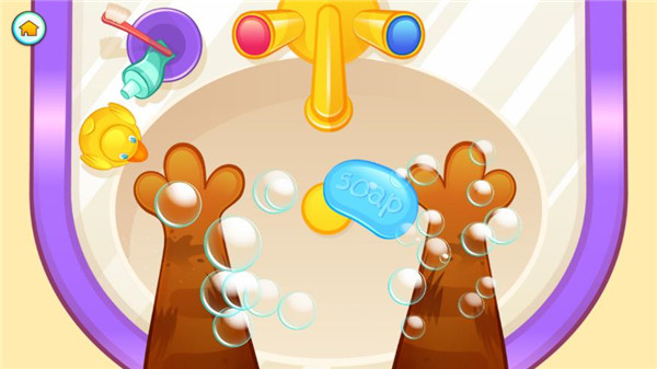 3、点击浴室,给脏脏的bubu洗个澡。还能擦出透明的泡泡浴。