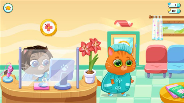 1、bubu生病的时候,会一直弹出肚子疼的标志,点击即可前往诊所。