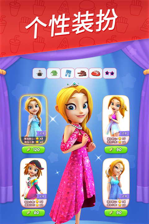 4、不断解锁新餐厅提升你的烹饪技能;闯过不同目标的关卡获得奖励来翻新和建设你的餐厅。