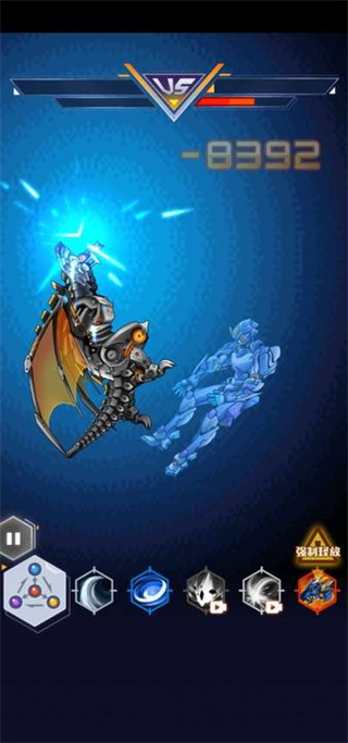 4、选择完机甲后我们进入游戏,游戏中我们要挑战各种各样的机甲,下方是释放技能。