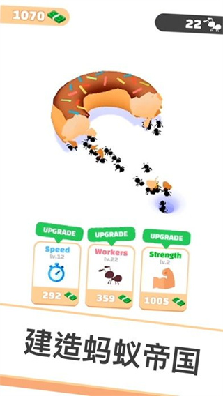 5、利用你的智慧升级和扩张蚂蚁的领地,使之成为一个最强大的蚂蚁帝国,感受蚂蚁世界的神奇之处。