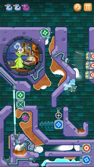 2、游戏中,有打水、泼水、溅水,还有引导水通过越来越难的场景,每一滴水都管用。在游戏过程中,玩家还需要发挥聪明才智,要小心藻类、有毒软泥,机关和各类陷阱。