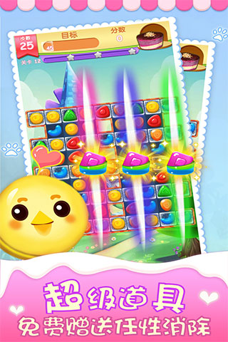 3、多种不同颜色的糖果更能让玩家拥有更为全新的挑战,游戏内的玩法也是极多,还有各种动听的音乐伴随闯关。