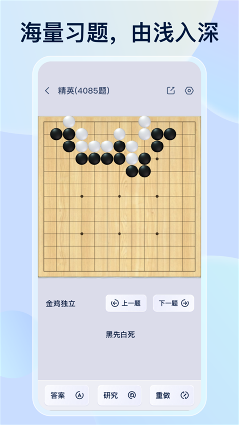 职业棋手为你精选出了5个难度,近千道死活题,边玩边提高。