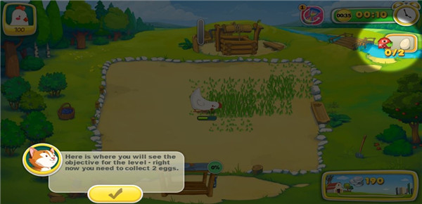 3、在这里你会看到这个关卡的目标,现在你需要收集2个鸡蛋;