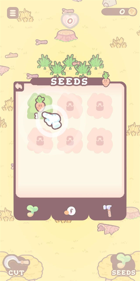 3、然后点击seeds,将胡萝卜种上去;